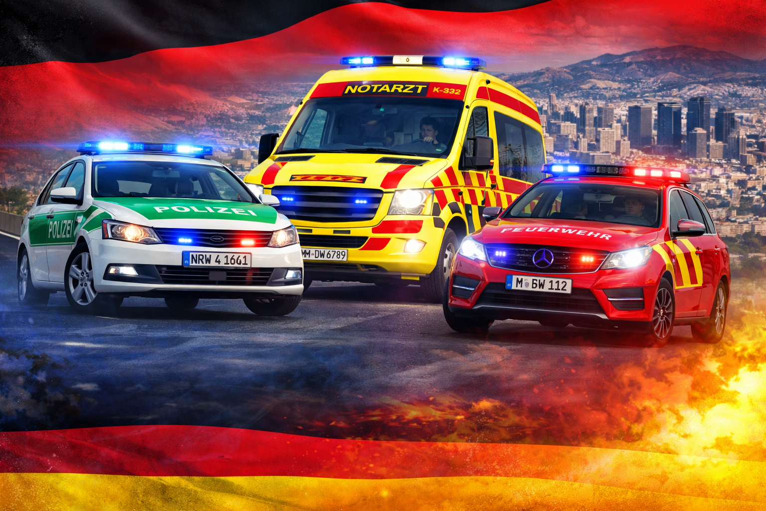 High-quality German emergency sirens inspired by real police, ambulance, and fire services.