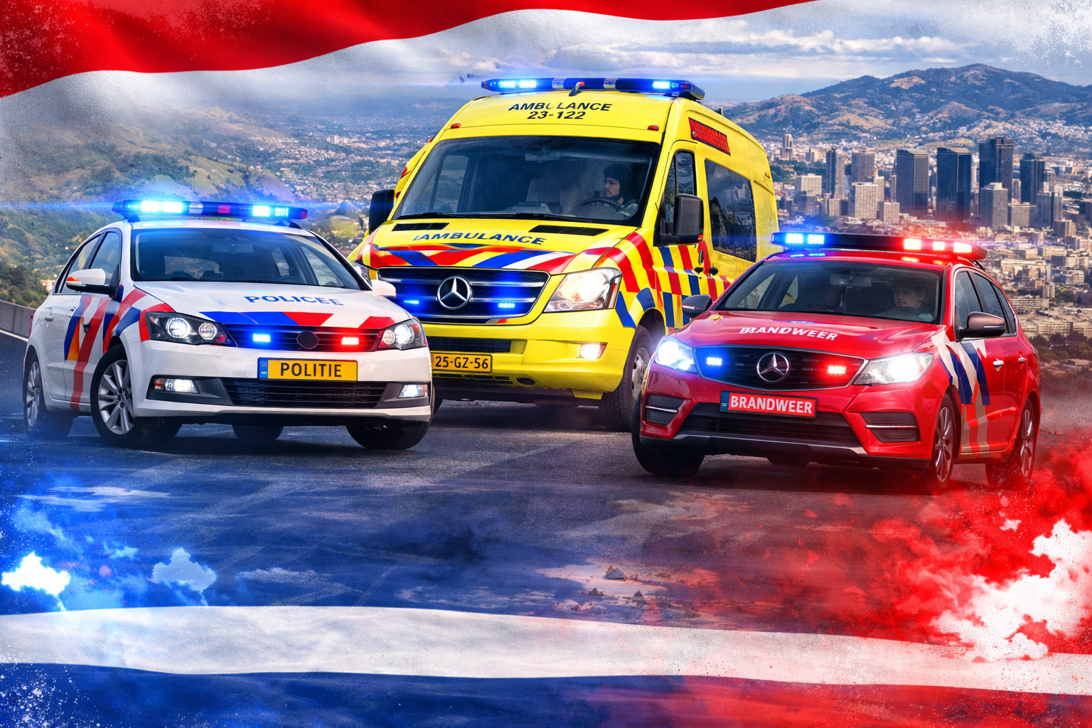 Realistic Dutch emergency sirens inspired by police, ambulance, and fire services.