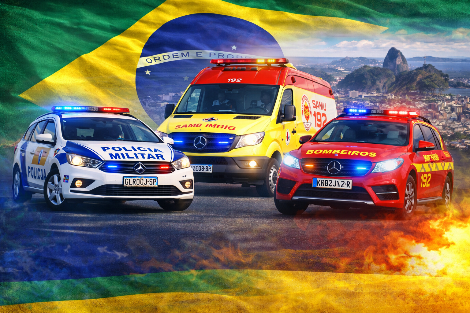 Authentic Brazilian-style emergency sirens based on local police, ambulance, and fire vehicles.